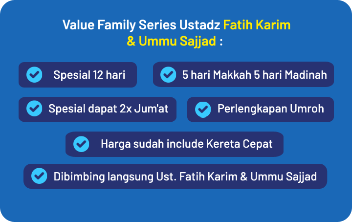 Akan disampaikan di Itinerary jamaah untuk lengkapnya. Jadwal dapat berubah sewaktu-waktu sesuai kondisi di lapangan.