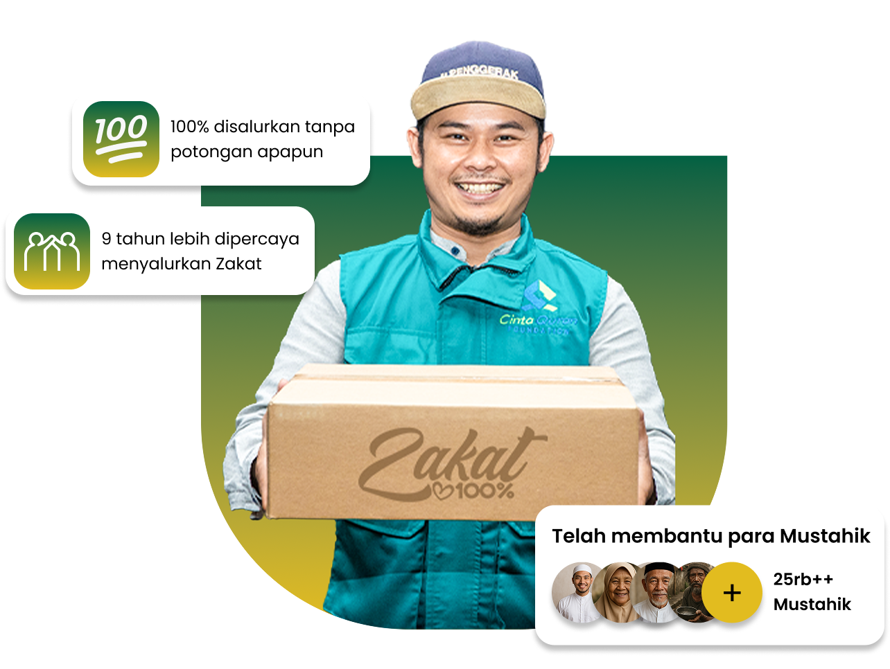 Program Zakat yang disalurkan 100% tanpa potogan apapun. apa yang kamu beri akan diterima sepenuhnya oleh Mustahik.